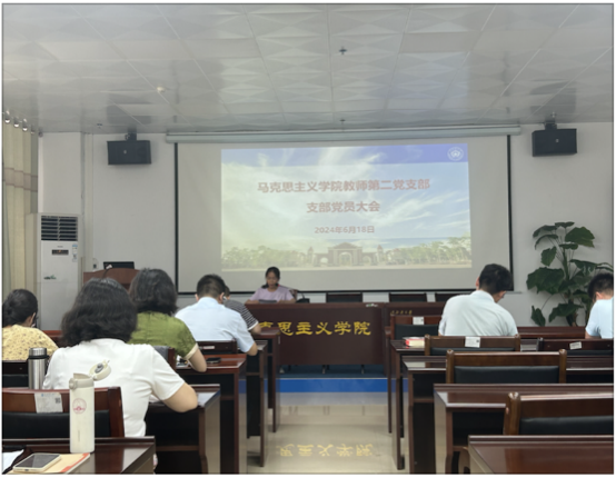 6月18日下午,马克思主义学院教师第二党支部在201会议室召开支部大会,开展理论学习活动。会议由支部书记张秋萍同志主持,全体党员同志参加。