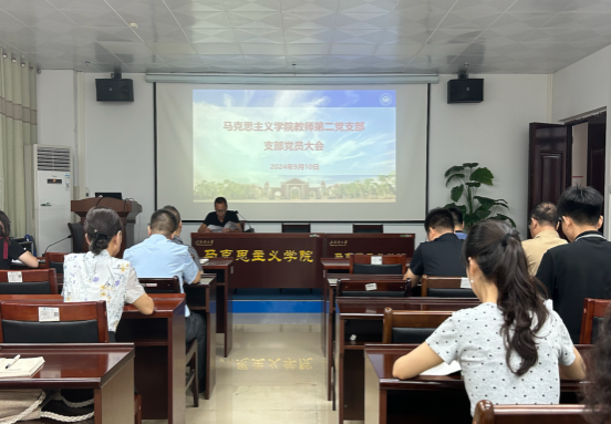 9月10日下午,马克思主义学院教师第二党支部在学院201会议室召开支部党员大会,开展理论学习活动。会议由支部书记张秋萍同志主持,全体党员同志参加会议。