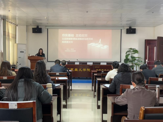 12月31日下午,马克思主义学院教师第二党支部书记张秋萍在201会议室为支部全体党员讲党课。此次党课的主题是“夯实基础 主动应变:立足职能职责纵深推进马院党建高质量发展”。