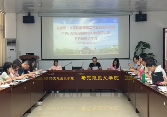 5月27日下午,马克思主义学院教师第二党支部在学院201会议室召开支部大会,开展中央八项规定精神学习教育研讨和理论学习活动。会议由支部书记张秋萍主持,全体党员同志参加会议。