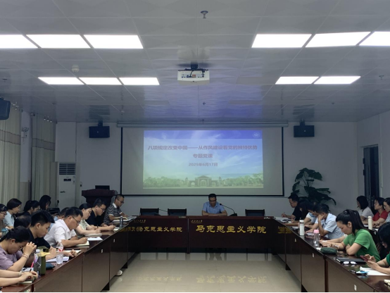 最后,裴以明号召学院全体党员教师,要以此次学习教育为契机,将中央八项规定精神内化于心、外化于行,在日常教学科研和管理工作中以身作则,力戒形式主义、官僚主义,以优良党风带动教风学风,为落实立德树人根本任务、推动学校高质量发展提供坚强保障,为中国式现代化建设贡献教育力量。