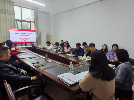 为深入学习贯彻党的二十届四中全会精神。马克思主义学院教师第一党支部11月18日下午在学院217室开展理论学习。会议由支部书记何良俊同志主持,全体党员同志参加会议。