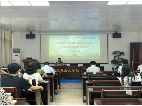 6月18日下午,马克思主义学院教师第二党支部在201会议室开展党纪学习教育主题党日活动,集中学习《中国共产党纪律处分条例》(以下简称《条例》)第七、八、九章。活动由支部书记张秋萍同志主持,全体党员同志参加。