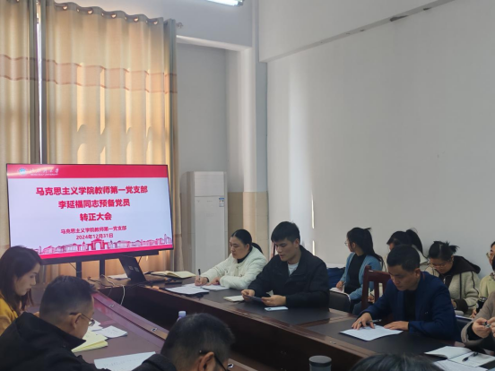 12月31日,马克思主义学院教师第一党支部在学院217室召开李延福同志预备党员转正大会。会议由支部书记何良俊同志主持,全体党员同志参加会议。