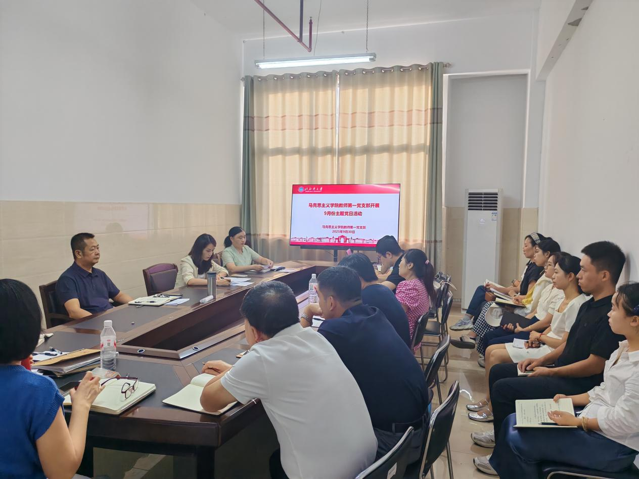为弘扬伟大抗战精神,向着中华民族伟大复兴的光辉彼岸奋勇前进,9月30日下午,马克思主义学院教师第一党支部在学院217室开展主题为“弘扬伟大抗战精神,砥砺奋进初心使命”主题党日活动,活动由支部副书记颜文娟同志主持,全体党员同志参加活动。