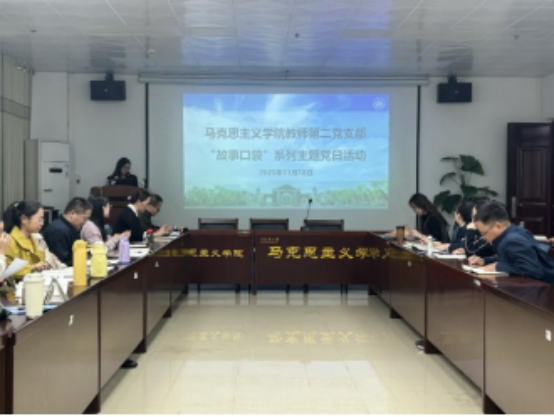 11月18日下午,马克思主义学院教师第二党支部在学院201会议室开展“故事口袋”系列主题党日活动。活动由支部书记张秋萍主持,全体党员同志参加活动。