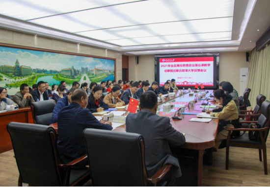 会上,韩峻峰以《深化内涵建设 扎实建好思想政治教育课》为题,重点从组织领导、队伍建设、课程建设、条件保障、现存问题以及下一步整改思路等方面详细汇报了学校思想政治理论课的改革创新工作。