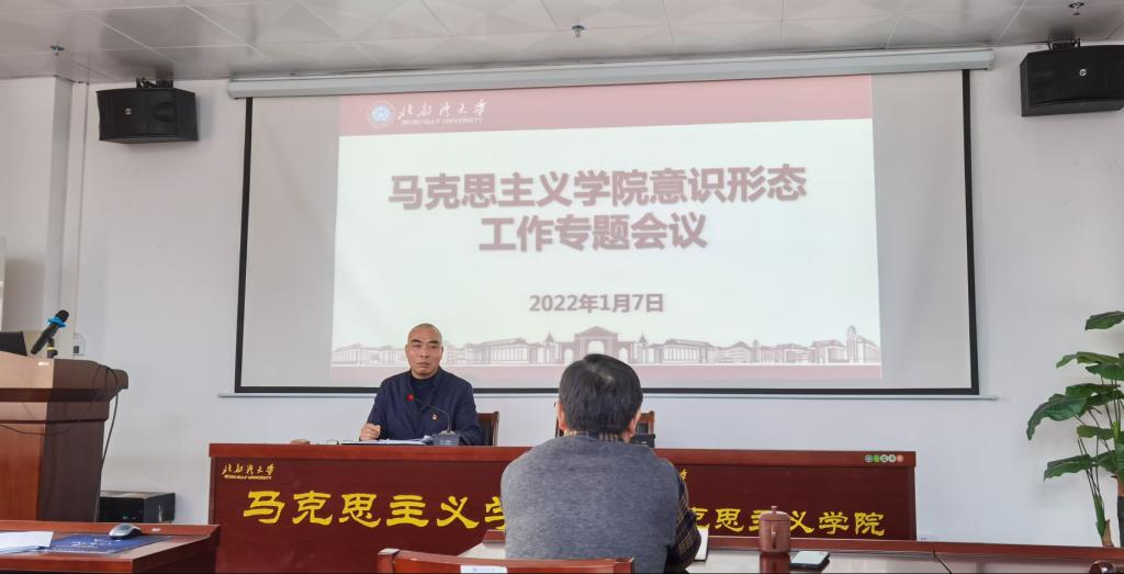2022年1月7日下午,学院在201会议室召开意识形态工作专题会议,传达学校会议精神,围绕意识形态和安全稳定安排布置相关工作。学院全体教职工参加会议,党总支书记王国强同志主持会议。