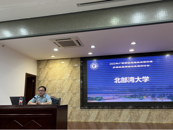 10月31日至11月2日,由广西大学牵头主办的2022年思想政治理论课多层级集群结对共建研讨会暨思政教育领军人物创新发展团队建设论坛在北海市桂新酒店召开,我院副院长潘俊杰教授参加会议并在论坛作主旨发言。