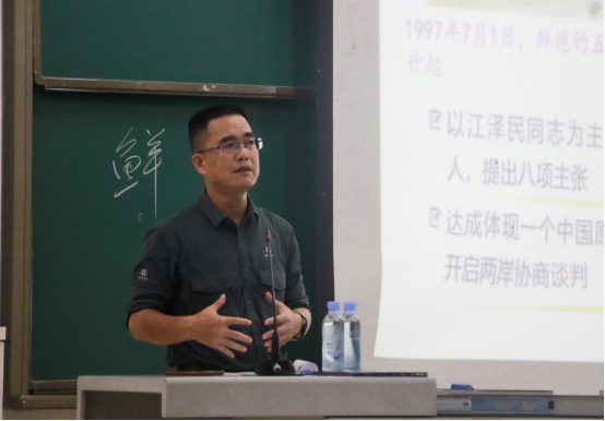梁智总会计师以《在新时代新征程上推进祖国统一》为主题,围绕着接续奋斗的光辉历程、不可阻挡的统一大势、与时俱进的行动纲领三个部分,阐述了解决台湾问题、实现祖国完全统一,是中国共产党矢志不渝的历史任务,是全体中华儿女的共同愿望。中国共产党进行了长期不懈奋斗,与时俱进制定实施对台方针政策,有力推动祖国统一进程。帮助学生认识到我们比历史上任何时期都更接近、更有信心和能力实现祖国完全统一的目标。