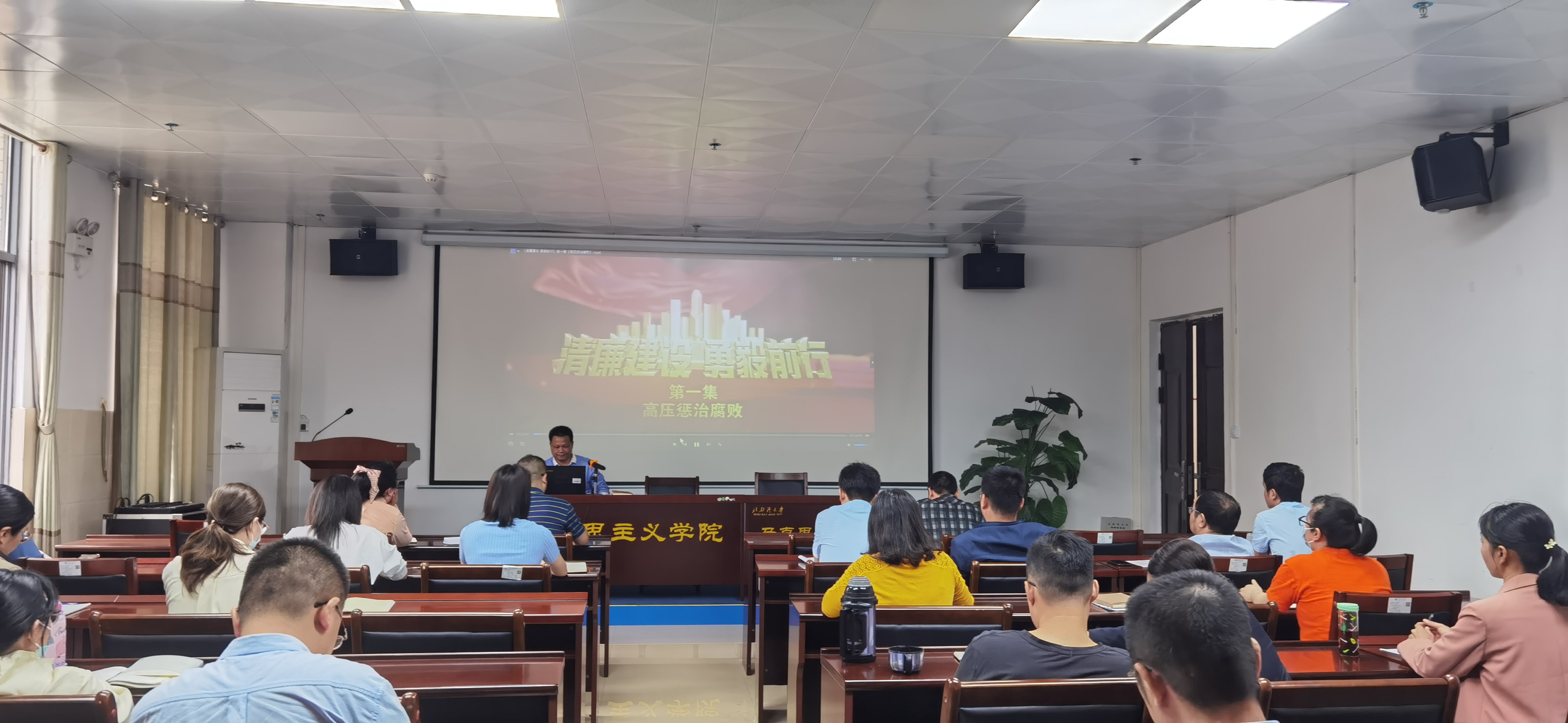 官书记从第一编总则、第二编分则、第三编附则三个部分对《中国共产党纪律处分条例》(以下简称《条例》)进行解释,并对违反党的政治纪律、组织纪律、廉洁纪律、群众纪律、工作纪律、生活纪律等行为的处分内容进行了重点解读。课堂上,马克思主义学院全体党员教师还观看了《清廉建设 勇毅前行》警示教育片,警示教育片以纪实的手法讲述了贵港市原市委书记李新元的腐化蜕变过程,深刻分析了案发原因,是一部开展反腐倡廉教育的典型教材。通过这次廉政党课活动,马克思主义学院党员教师又接受了一次深刻的党风廉政警示教育,使各位党员教师对党的纪律有了更明确、更清晰的认识,确保每一位党员教师熟知党纪党规,有利于提升党员教师的党性修养和纪律意识。