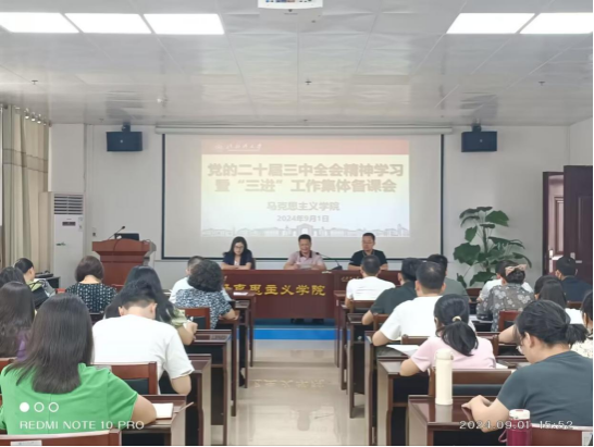 2024年9月1日下午,学院在201会议室举行党的二十届三中全会精神学习暨“三进”工作集体备课会。会议由学院党委书记、院长官秀成同志主持,学院全体党员教师参加会议。