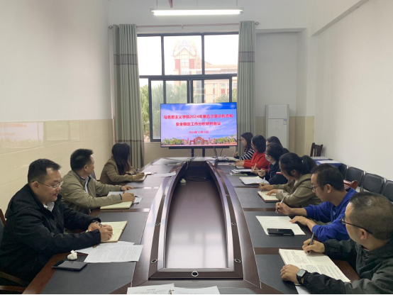为全面筑牢马克思主义学院在意识形态领域的主体责任防线,研判和部署学院新阶段意识形态工作和安全稳定工作,12月10日下午,马克思主义学院在217会议室召开2024年第五次意识形态和安全稳定工作分析研判会议。学院党委书记官秀成主持会议,学院党委委员、支部书记和教研室主任参加会议。