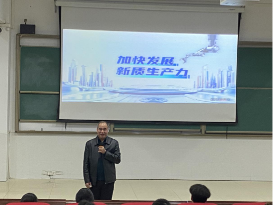 2024年12月17日晚上,唐高华副书记为舞表专升本、物联专升本等专业学生上了一堂以“加快发展生产力”为主题的形策课。