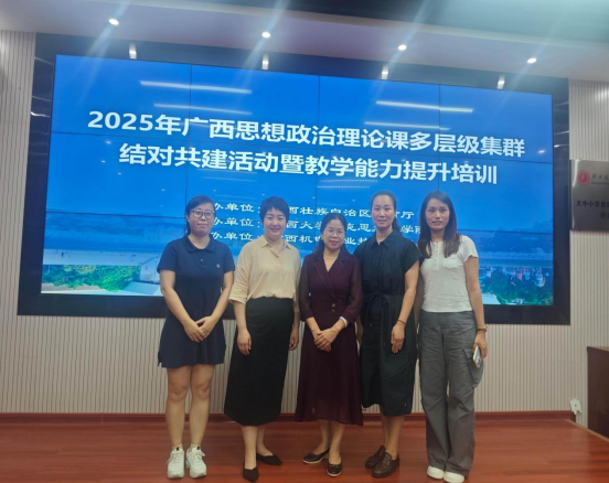 2025年6月28日,我院颜文娟、张水莲、谢娟三位老师到广西大学参加了“2025年广西思想政治理论课多层级集群结对共建活动暨教学能力提升培训”活动。本次培训活动邀请了国家教育行政学院国际合作处、全国高校思政课教师能力提升研究中心特聘专家田岚洁博士作专题讲座《结构化研讨的实践与探索》。田老师以其深厚的理论功底和丰富的实践经验,为参会教师带来了一场精彩纷呈的学术盛宴。