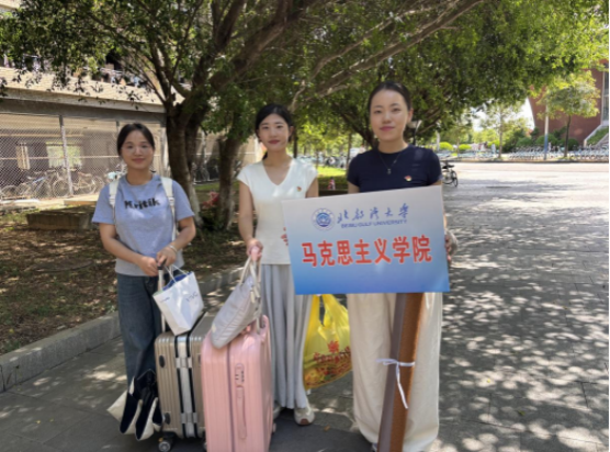 迎新期间,学院提前谋划,精心选拔了政治素质过硬、责任心强的师生党员组成“党员志愿服务队”,实施“一对一”精准对接,从“从校门到宿舍”全过程服务。每位迎新学姐提前与对接新生取得联系,确认到校时间,规划最佳入校路线,协助新生搬运行李、引导报到流程、解答疑问,为新生提供从校门到宿舍的全程引导和帮助。学生党员们用真诚与行动践行着“全心全意为同学服务”的宗旨,为新生上了生动的“入党第一课”,也展现了马院学子之间“传、帮、带”的优良传统与巾帼风采。学生党员们用真诚与行动践行着“全心全意为同学服务”的宗旨,以实际行动为新生“入党启蒙”,也展现了马院学子之间“传、帮、带”的优良传统与巾帼风采。
