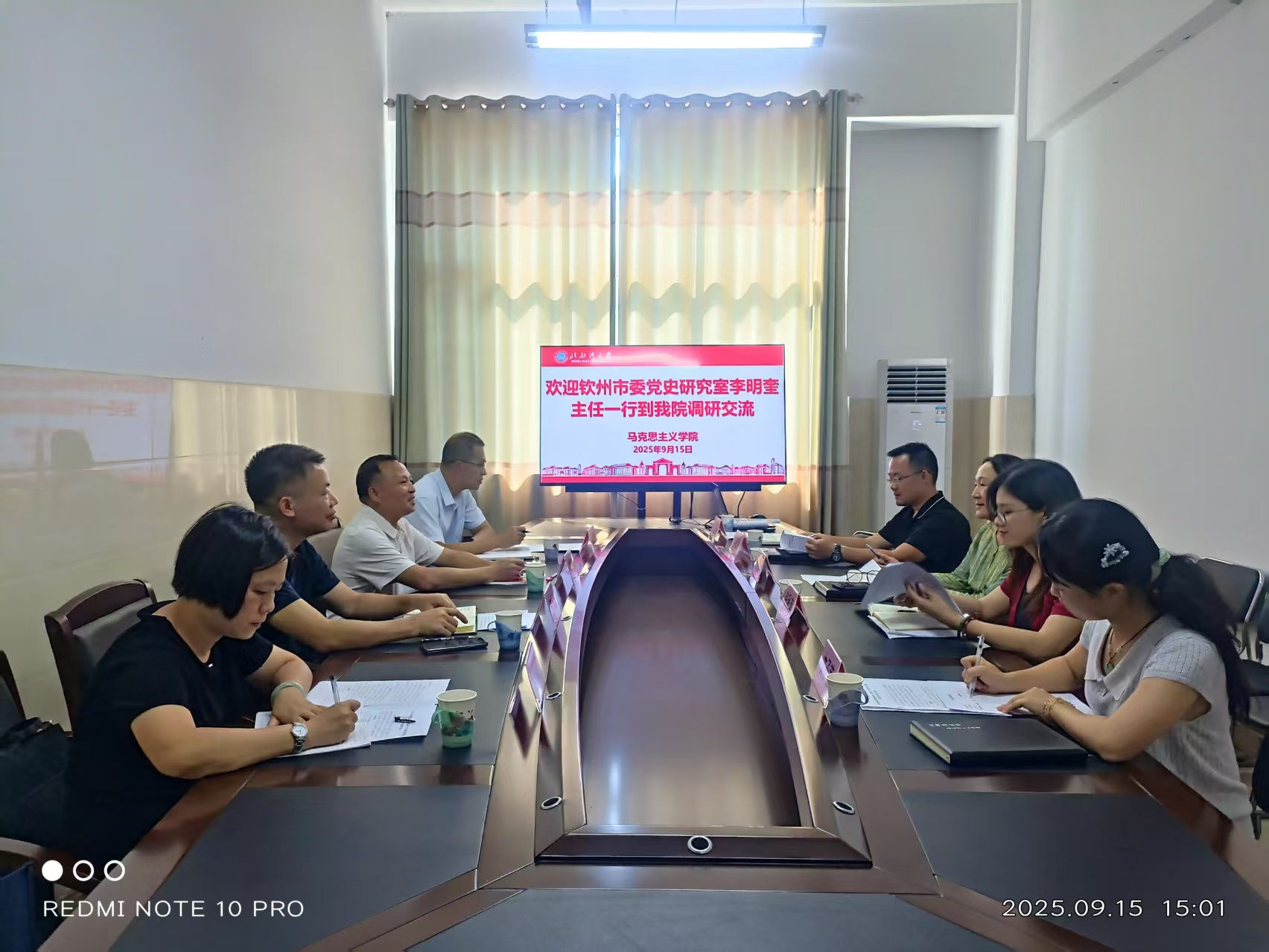 9月15日下午,中共钦州市委党史研究室李明奎主任一行4人到我院开展调研,并于学院217会议室进行座谈交流。学院领导班子成员及教师代表参加会议。会议由院长王柏玲主持。