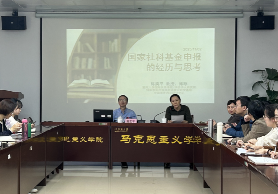 为扎实推进2026年度国家社科基金项目申报工作,2025年11月3日下午,马克思主义学院在201会议室举办国家社科基金项目申报指导暨“红帆思享会”第二次专题讲座。本次讲座特邀暨南大学陈奕平教授担任主讲嘉宾,专题为《国家社科基金申报的经历与思考》。会议由王柏玲院长主持,学院无课教师以及校内感兴趣的教师参加会议。