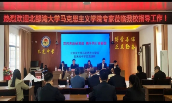 2025年11月13日,毛泽东思想和中国特色社会主义理论体系概论教研室主任许雅斐老师带领教师团队(以下简称“团队”)赴博白县松旺镇朱光初级中学开展调研交流活动,并正式达成横向合作项目——《朱光初级中学校本课程开发项目》。