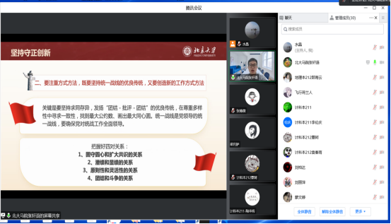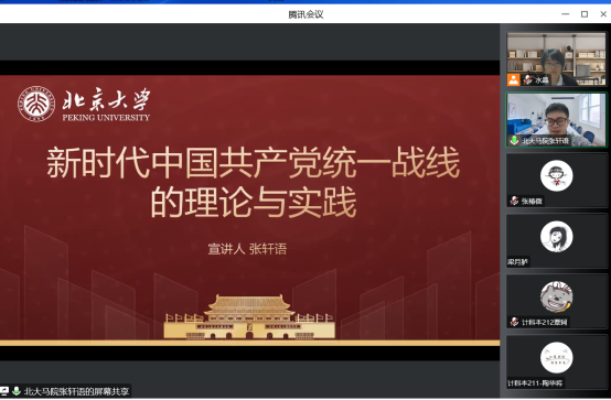 11月5日上午,马克思主义学院原理教研室邀请了北京大学马克思主义学院博士生张轩语为原理教研室教师及学生作了题为“新时代中国共产党统一战线的理论与实践”的线上专题讲座。本次讲座由教研室主任江宗超主持,原理教研室教师及部分学生参加了此次讲座。