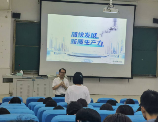 2024年10月22日,尹艳镇副校长在12-104教室为本科学生讲授了题为“加快发展新质生产力”的形势与政策课。