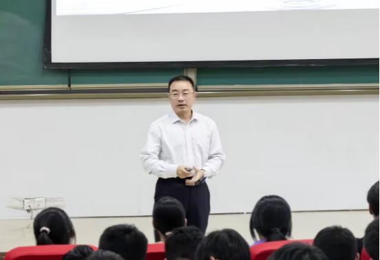 课堂上,徐书记鼓励同学们,希望他们努力成为推动新质生产力发展的主力军、成为新时代的创新型应用型人才、成为德智体美劳全面发展的社会主义建设者和接班人,并提出要求:一是深入领会加快发展新质生产力,扎实推进高质量发展,以中国式现代化推动中华民族伟大复兴的要求,增强使命感和责任感;二是紧跟时代前沿,与时俱进,在专业领域学习上加强数字技术赋能,提升自我学习、自我提升能力,学习高精尖知识,适应社会经济体制高效能、高科技、高质量革新化发展;三是传承并弘扬科学家勇攀高峰、敢为人先的创新精神,积极投身“专业+”交叉学科专业知识学习,以应对战略性新兴产业和未来产业需要。