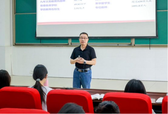 讲课中,徐华蕊勉励同学们要发扬创新精神,将数字化技术融入学习实践,助力学校高质量发展。要练就过硬本领,不断提高自身综合素质,为教育强国建设贡献青春力量。要主动担当作为,拓宽国际视野,将专业知识转化为服务经济社会发展的实际能力,在中国式现代化建设中彰显青春风采。