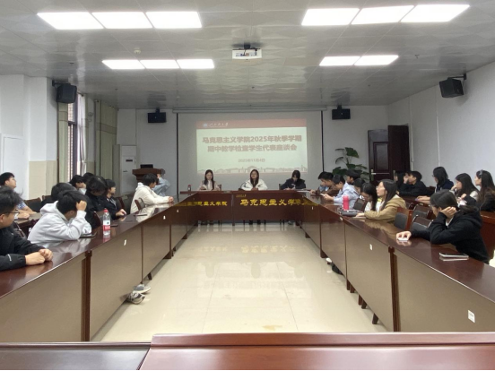 2025 年 11 月 4 日,马克思主义学院 2025 年秋季学期期中教学检查学生代表座谈会在校史馆二楼 201 会议室召开。学院副院长张秋萍及教学管理工作人员与来自各班级的学生代表齐聚一堂,以“聚焦思政课提质增效,助力学生成长成才”为主题,面对面畅聊心声,共商思政课建设优化路径。