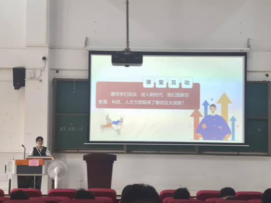 授课教师围绕“社会主义现代化建设的教育、科技、人才战略”主题,首先以“李约瑟难题”和“钱学森之问”为切入点,引导学生深入思考,导入教学主题。接着,授课教师系统梳理了教材章节内容的“总—分”逻辑框架,即从教育、科技、人才作为全面建设社会主义现代化国家的基础性、战略性支撑的总体论断,到建设教育强国、科技强国、人才强国的具体部署,重点讲解了教育、科技、人才三者一体推进的战略意义。授课教师结合历史纵深与全球视野,回顾了中国共产党在不同时期推动科教事业发展的历程,展示了新时代科教事业取得的伟大成就,解读了科教兴国战略、人才强国战略、创新驱动发展战略的实施路径。课堂互动积极,气氛活跃,教学效果良好。