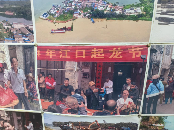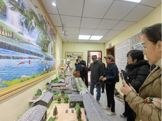 调研首日上午,团队抵达平陆运河的起点——横州市平塘江江口村。在街长雷玉宝及热心村民的引导下,教师们行走在江口老街,实地察看了运河起点建设工地,并重点参观了位于村居委会的“江口历史文化主题展示”。展厅内,精巧的盐业古镇模型、珍贵的西津水电站建设文物、承载岁月记忆的历史影像资料,系统勾勒出这片土地的发展脉络:从古代“八朝盐都”依水而兴、商贾云集的辉煌,到五十年前因西津水库建设而进行的村落迁移与功能转变,再到当下因平陆运河这一世纪工程的启动而迎来的崭新发展机遇。教师们通过实物与讲解,深刻体悟到交通格局演变对区域命运的决定性影响,切身感受到了国家“西部陆海新通道”战略如何为沉睡的千年古埠重新注入了向海图强的澎湃活力。