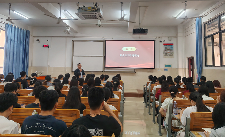 2026年3月26日上午,毛泽东思想和中国特色社会主义理论体系概论教研室在14栋210教室开展公开课教学活动。本次公开课由教研室教师黄洪海主讲,授课专题为“社会主义改造理论”,上午无上课任务的教研室老师到场观摩学习。