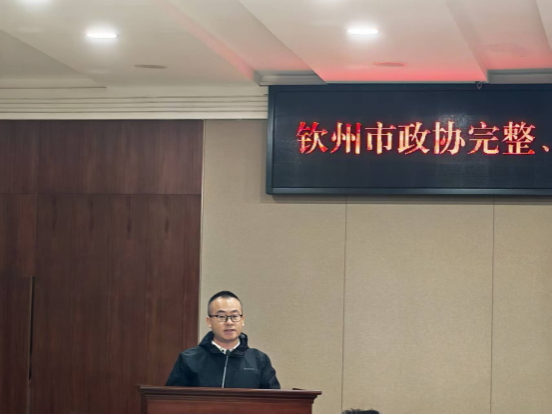 12月11日上午,学院副院长张秋萍、党政办公室主任黄宝章应邀参加钦州市政协完整、准确、全面贯彻落实习近平总书记关于加强和改进人民政协工作的重要思想理论研讨会。会上,黄宝章作为论文作者代表,作题为《数字技术赋能社会主义新型政党制度效能提升:意义、困境及实践进路》的中心发言。市政协主席、党组书记吕洪安出席会议并讲话。