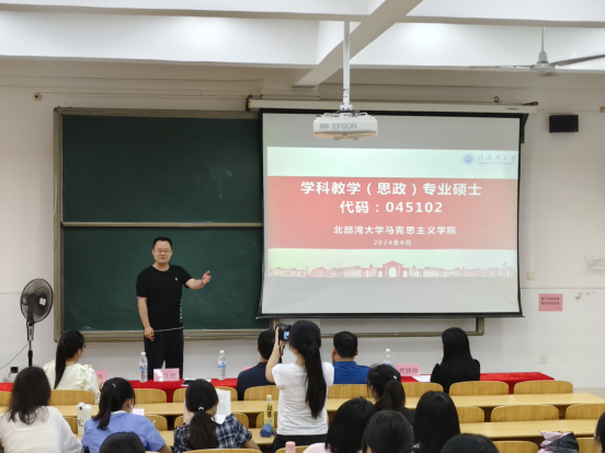 为推进2025年学科教学(思政)专业硕士研究生招生工作,6月23日,我院何良俊博士和2023级研究生代表韩江慧同学到教育学院开展招生宣讲活动,教育学院小学教育和学前教育专业三年级备考研究生的同学参加。